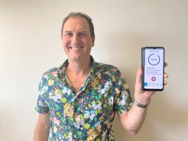Half of the 62 participants in the clinical trials with Parkinson's disease were able to use a version of the app to assist train their gait, while the other participants followed a standard walking regimen called the Otago Exercise Programme (OEP).