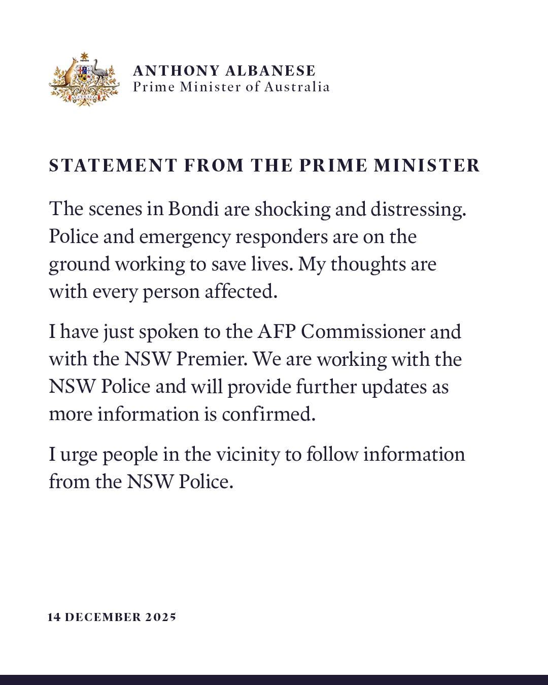 Prime Minister Anthony Albanese declared Sunday’s Bondi Beach massacre “an act of evil anti-Semitism, terrorism that has struck the heart of our nation,” speaking immediately after convening an emergency National Security Committee meeting in response to the attack that killed at least 12 people.