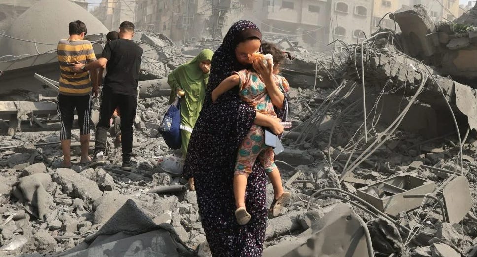As Israeli forces prepare for a ground invasion, Gazans face an ongoing humanitarian crisis. The Israeli siege of Gaza has cut off clean water, food, fuel, and power. Relief corridors are unavailable in Gaza, and the Rafah border crossing to Egypt has been repeatedly attacked.