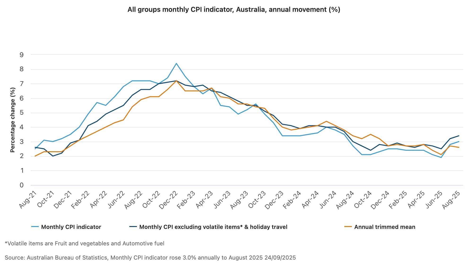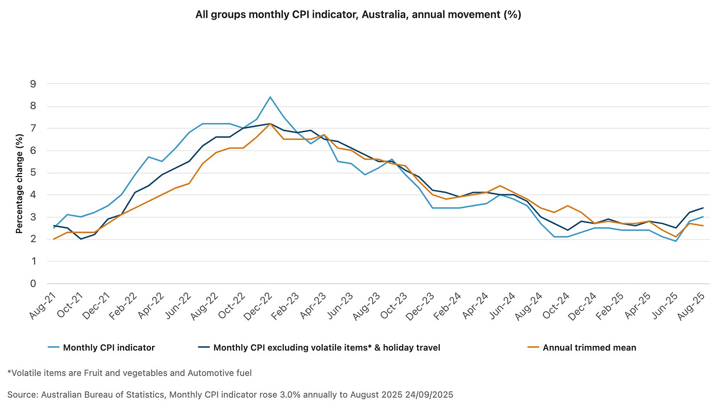 Australian inflation rose to 3.0 percent in the 12 months to August 2025, driven primarily by soaring electricity costs as state government energy rebates expired across multiple jurisdictions, according to data released Wednesday by the Australian Bureau of Statistics.
