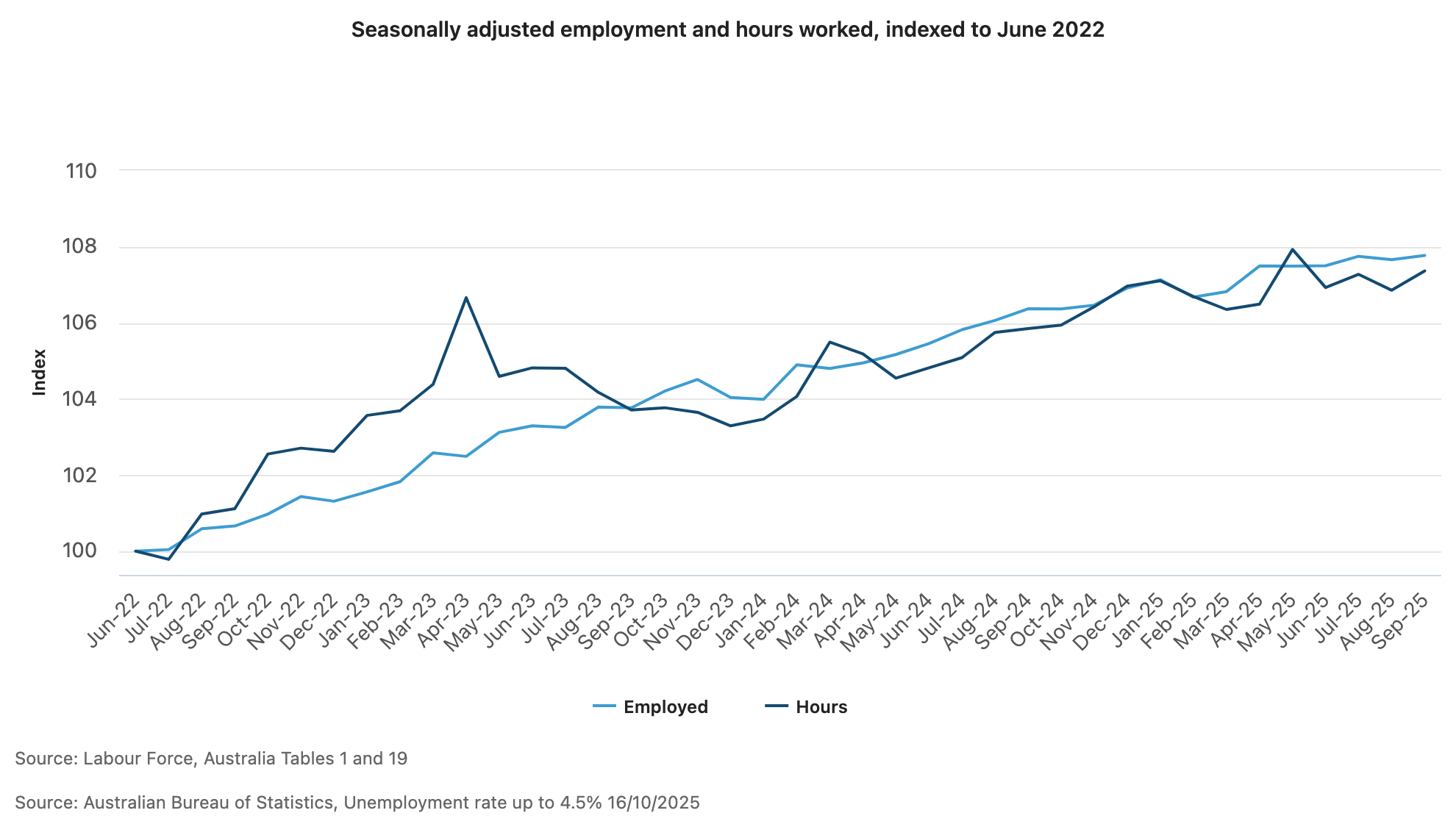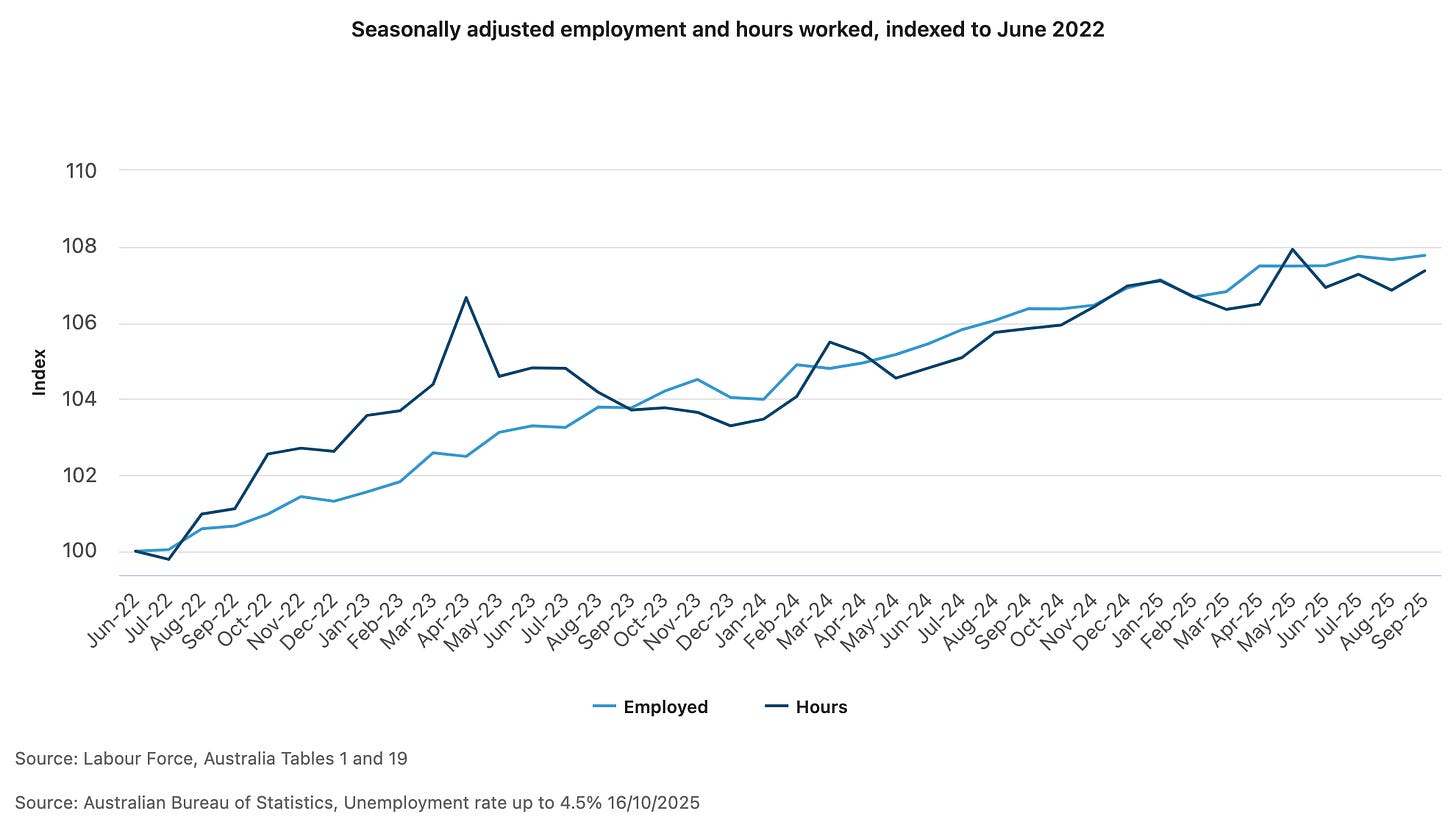 The underutilisation rate, which combines unemployment and underemployment into a single measure of total labor slack, jumped by 0.4 percentage points to 10.4%. This comprehensive metric now sits 0.1 percentage points higher than September 2024, though it remains 3.5 percentage points below the March 2020 reading.