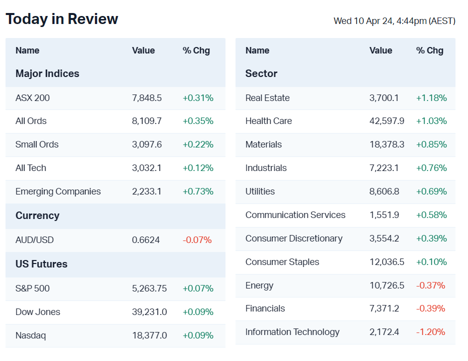 With a final value of 7,844.8, the S&P/ASX 200 (XJO) finished 20.6 points higher than its session low and 0.31% higher than its high. A 163-to-113 margin separated advancers from decliners in the more general S&P/ASX 300 (XKO).
