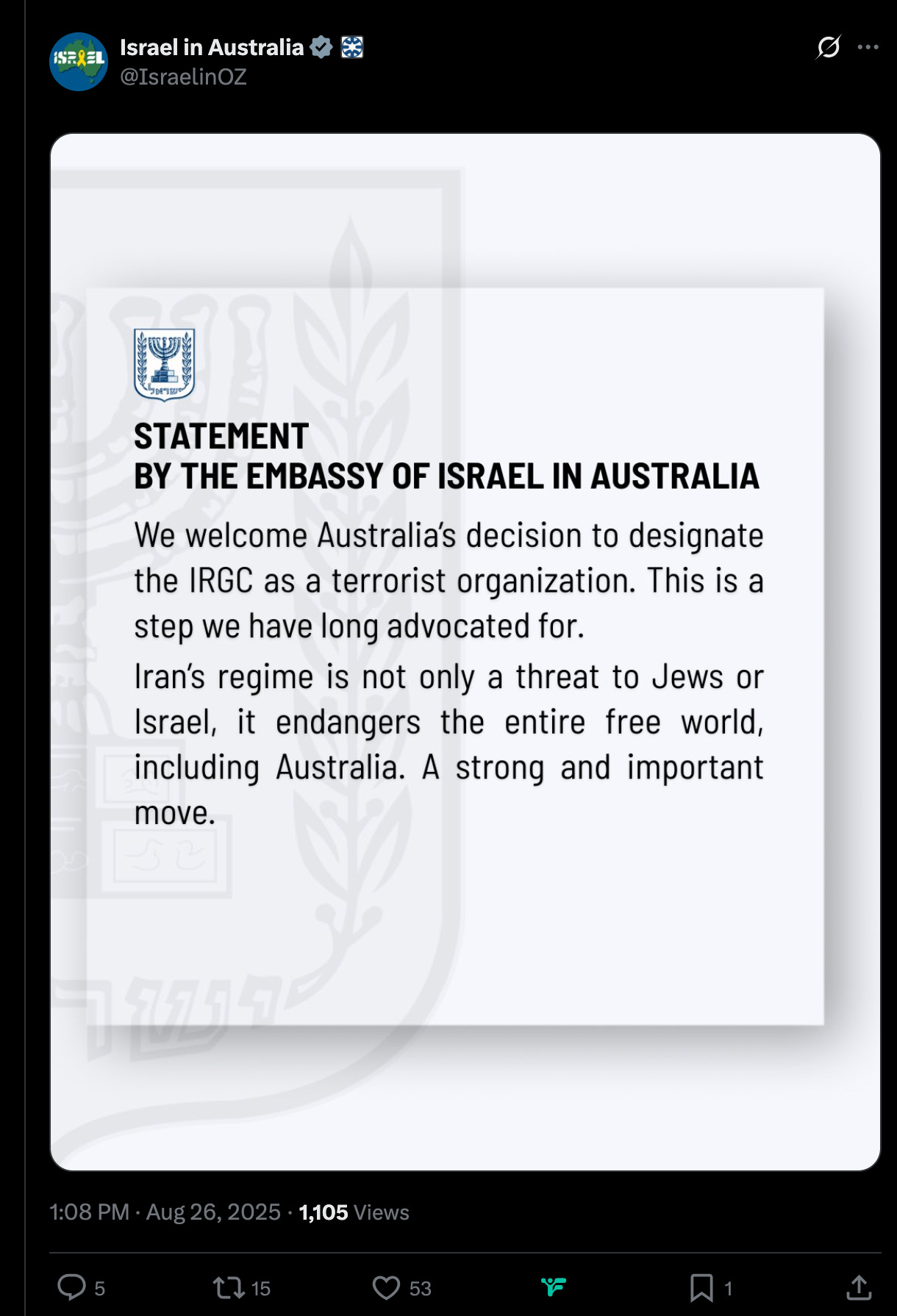Albanese also confirmed his government will legislate to formally designate Iran’s Islamic Revolutionary Guard Corps (IRGC) as a terrorist organization under Australia’s Criminal Code.