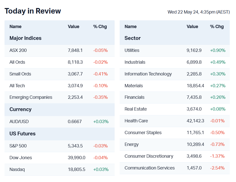 The S&P/ASX 200 closed 3.6 points lower, down 0.05%.