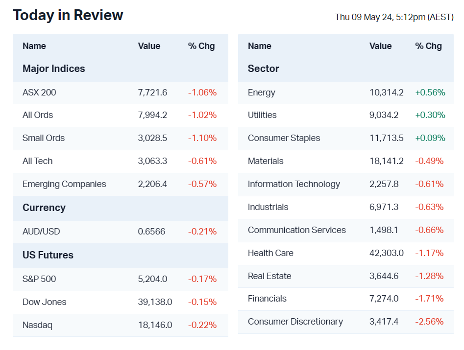 With a loss of 82.9 points, or 1.07%, from its session high and just 0.08% from its low, the S&P/ASX 200 (XJO) ended the trading session at 7,721.6. There was a 66:219 gap between the advancers and decliners in the more generalised S&P/ASX 300 (XKO). [Read more]