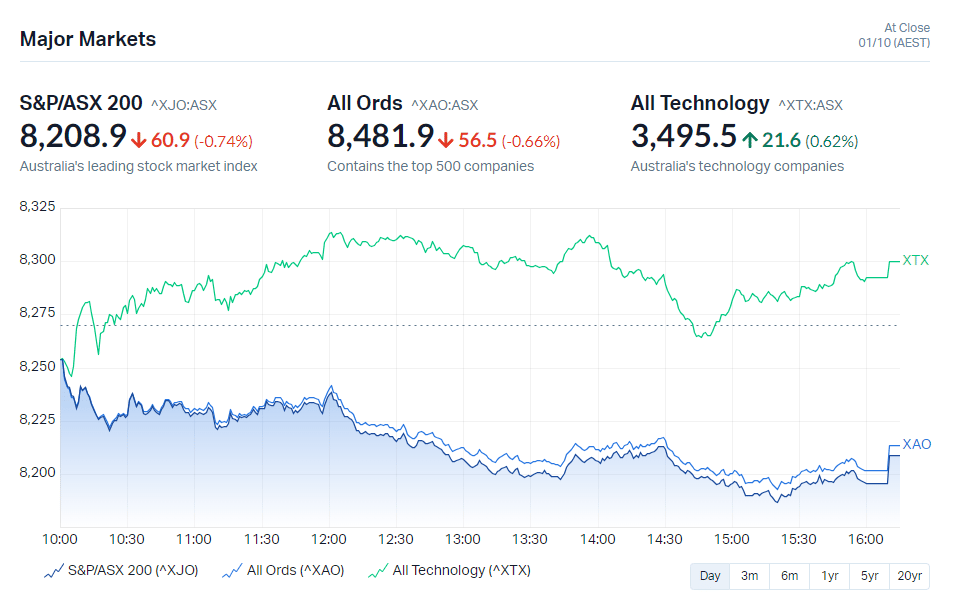 Data is provided by Market Index AU. Stock data as of At close 01/10 (AEST)