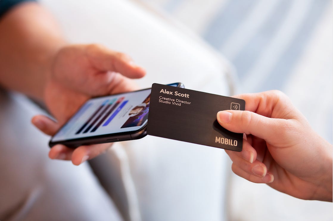 Here's a crazy stat: 27 million business cards are printed every single day. Mobilo is saying, "Enough is enough." They're ushering in the digital age of business cards, and it's a win-win. Not only are trees breathing a sigh of relief, but businesses are also saving time and money. Sharing your contact details is as simple as tapping your Mobilo digital business card on any modern smartphone.