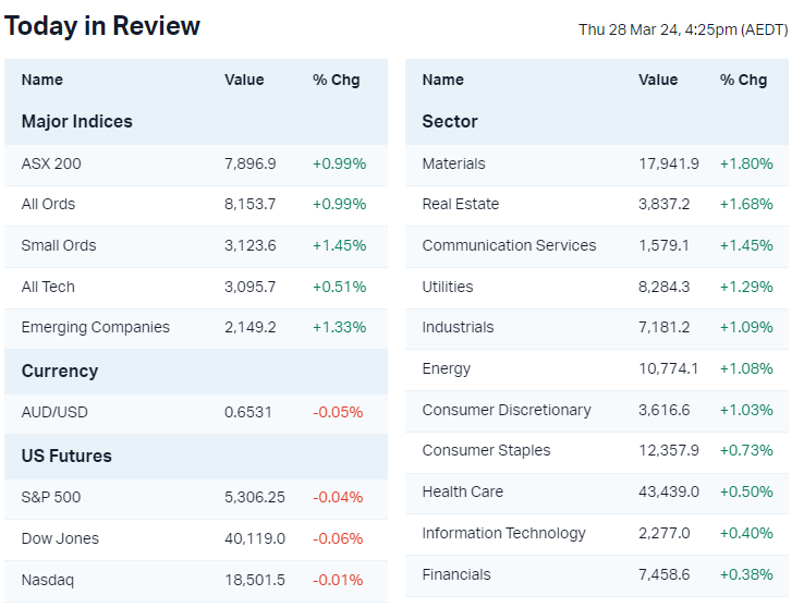 Up 0.99%, the S&P/ASX 200 closed 77.3 points higher.