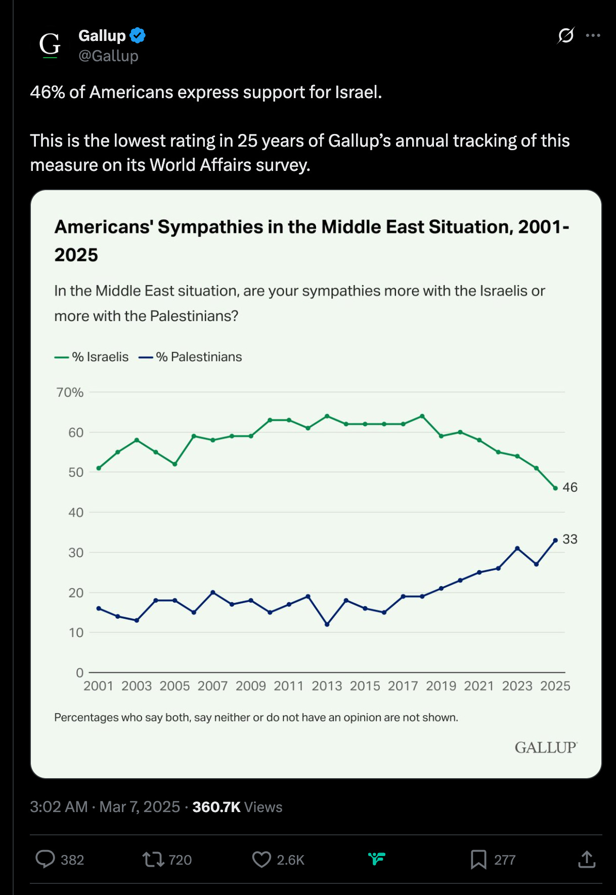 Given Netanyahu’s long-held opposition to a two-state solution, this might be a tough sell. However, Trump could be compelled to take a firm stand on the issue, given American public opinion is gradually shifting against Israel.