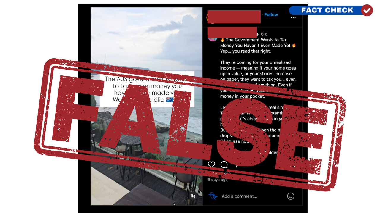 The government isn't planning a new tax on all unrealised gains, including homes and shares, to trap Australians in "financial slavery", despite social media claims.