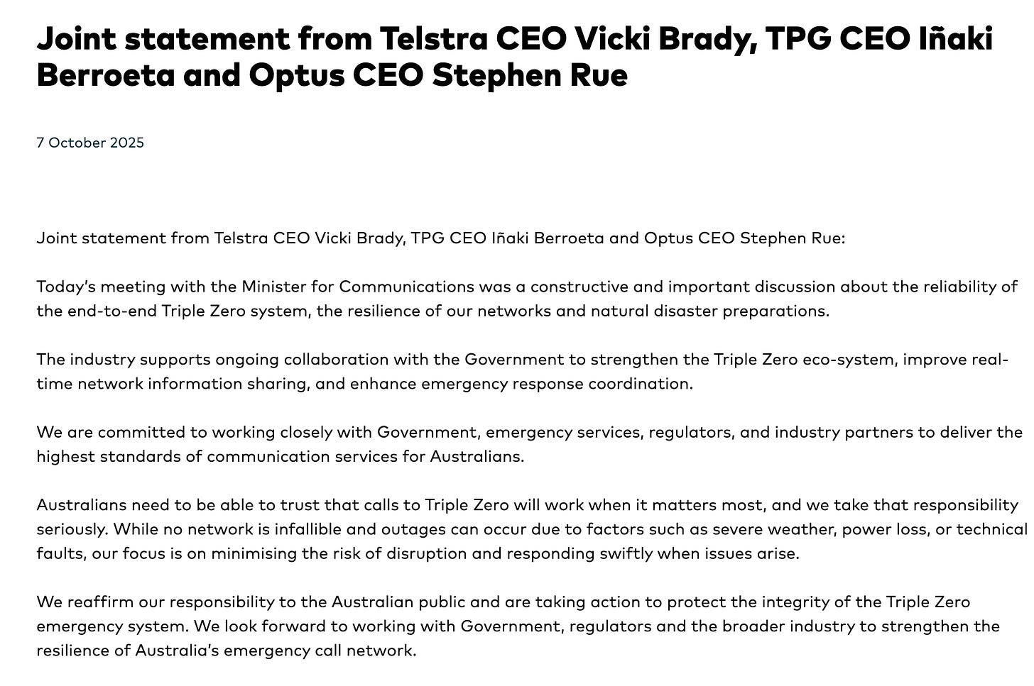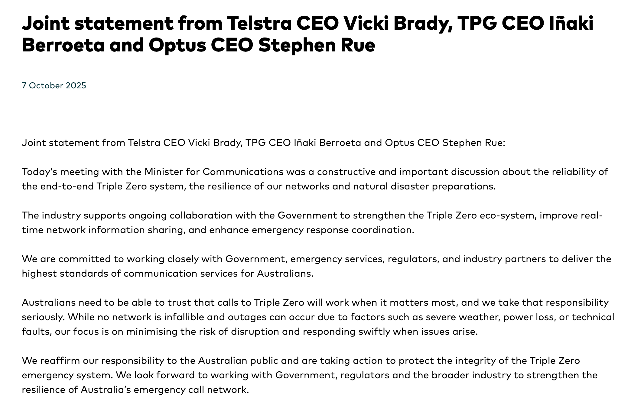 Under Australian telecommunications law, all carriers must maintain reliable access to emergency services. The Australian Communications and Media Authority (ACMA) serves as the regulatory body overseeing compliance. Minister Wells confirmed that ACMA was informed of the initial September 18 incident and has been investigating.