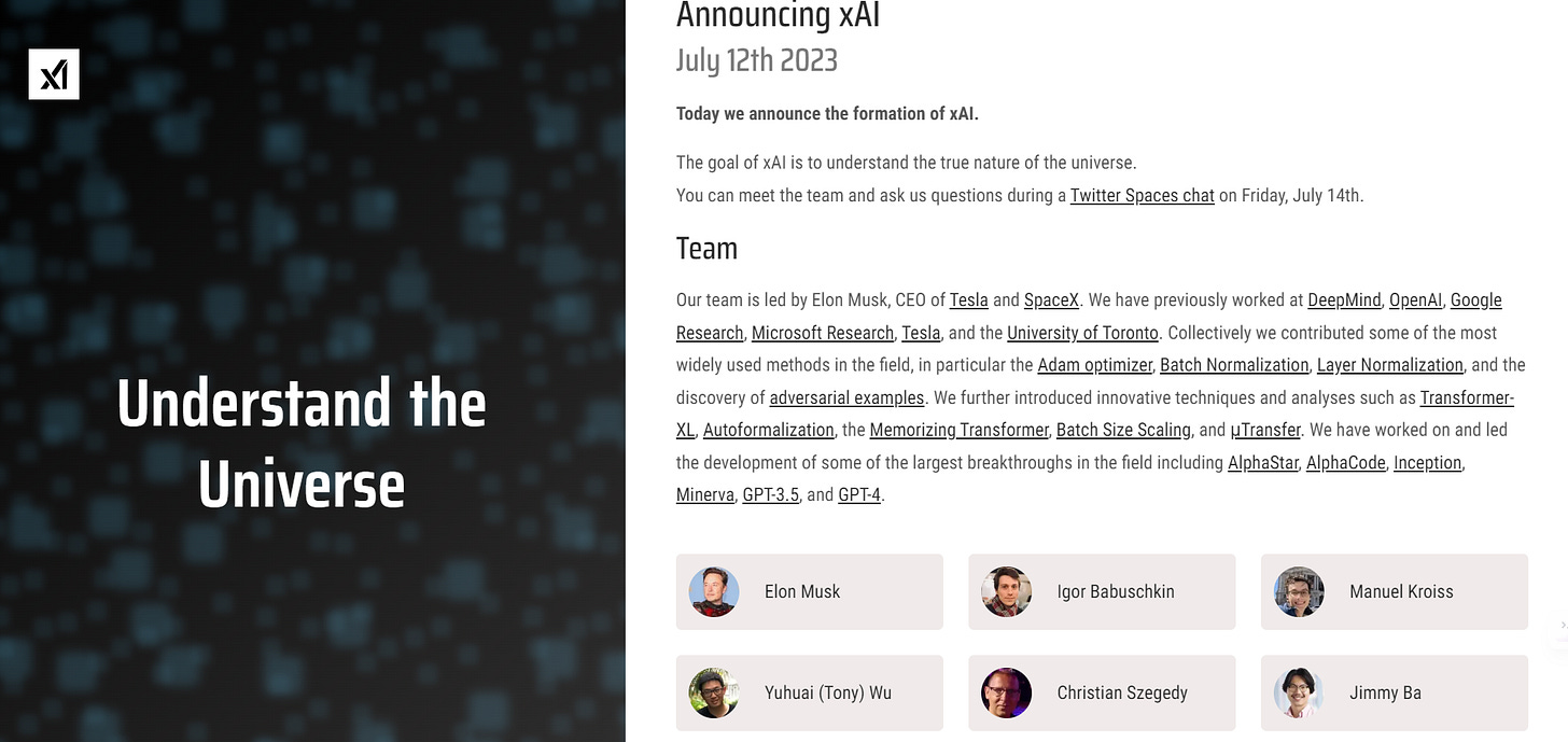 xAI's team includes former DeepMind engineers Igor Babuschkin, Tony Wu, Christian Szegedy, and Greg Yang.