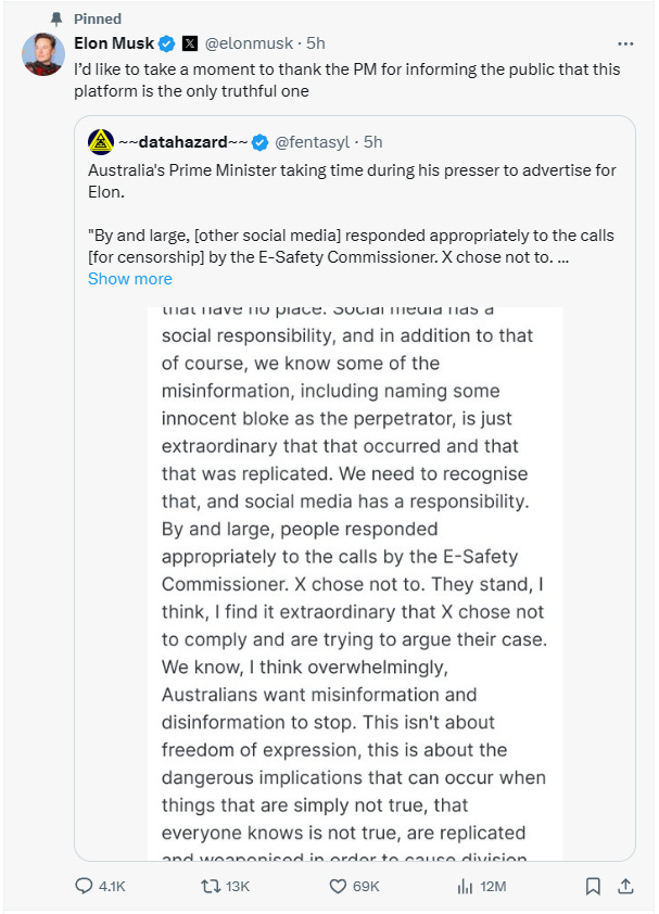 🗞️Musk Strikes Back: X and the Australian Internet Watchdog