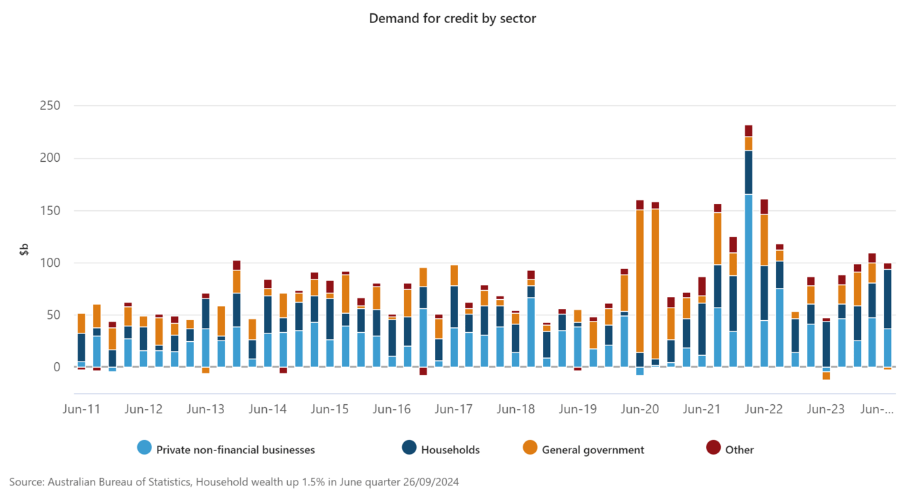 Household wealth gained for a seventh consecutive quarter, up 1.5 per cent or $250 billion to $16.5 trillion in June 2024