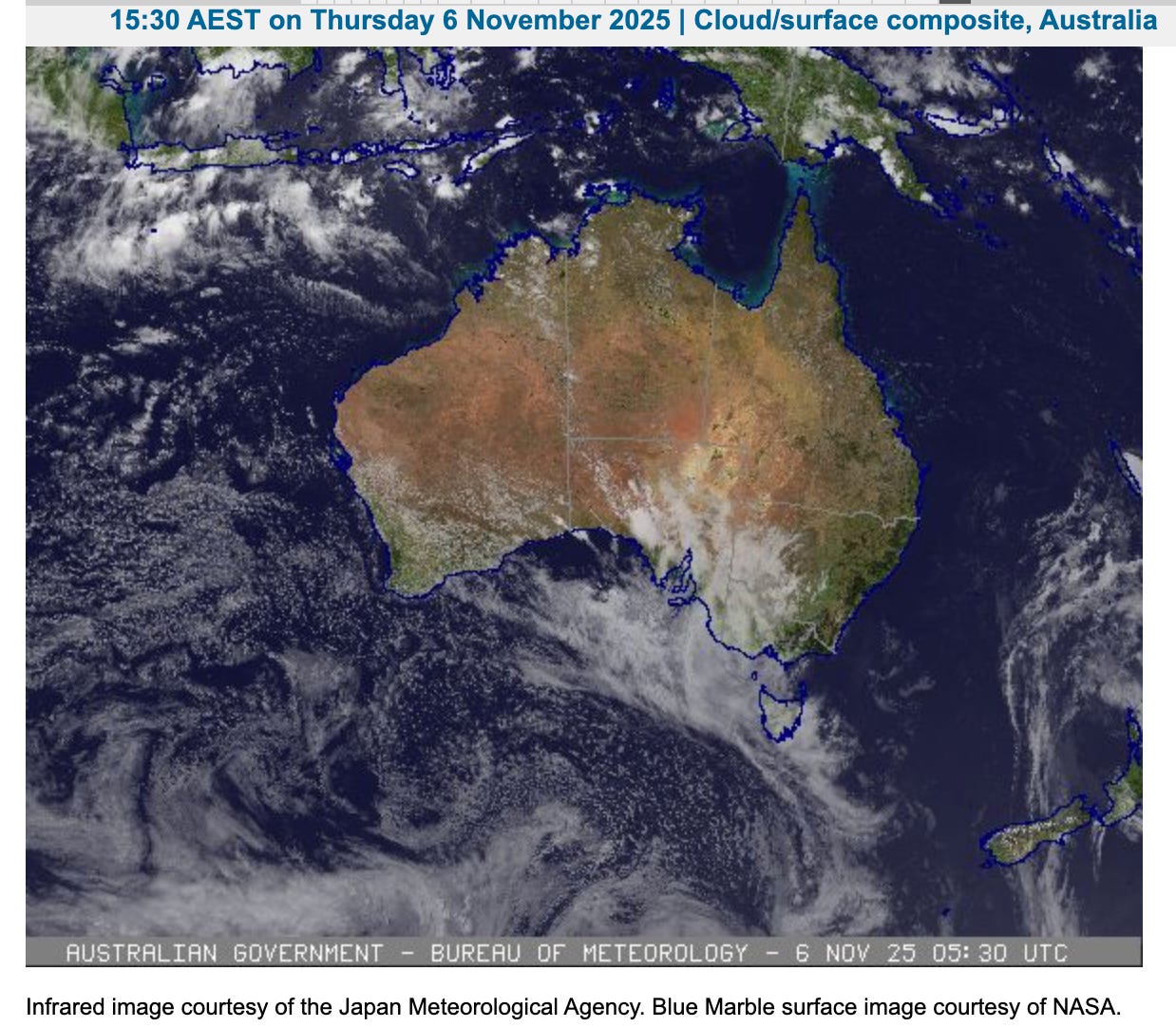 The Bureau of Meteorology confirmed that the image was taken by the Himawari-9 geostationary satellite, operated by the Japan Meteorological Agency (JMA).