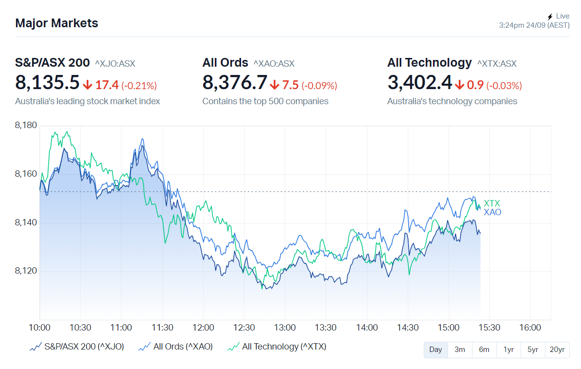 Data is provided by Market Index AU. Stock data as of 3:24pm 24/09 (AEST)