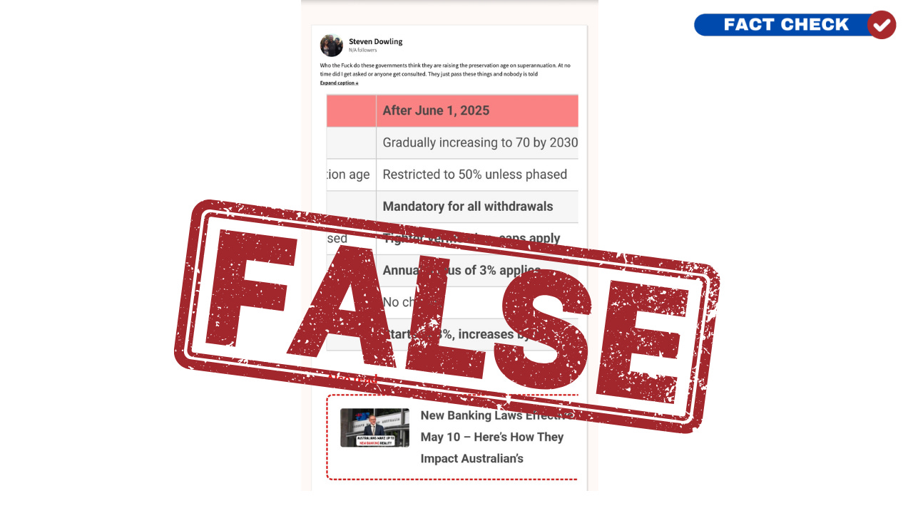 WHAT WAS CLAIMED : Australia's superannuation preservation age will gradually start rising to 70 from June 1, 2025.