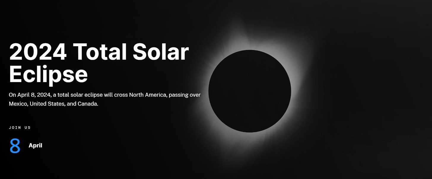 On April 8, 2024, a total solar eclipse will cross North America, passing over Mexico, the United States, and Canada. A total solar eclipse happens when the Moon passes between the Sun and Earth, completely blocking the face of the Sun. The sky will darken as if it were dawn or dusk. Watch Live here on April 9 at 2:30am ( Sydney time)