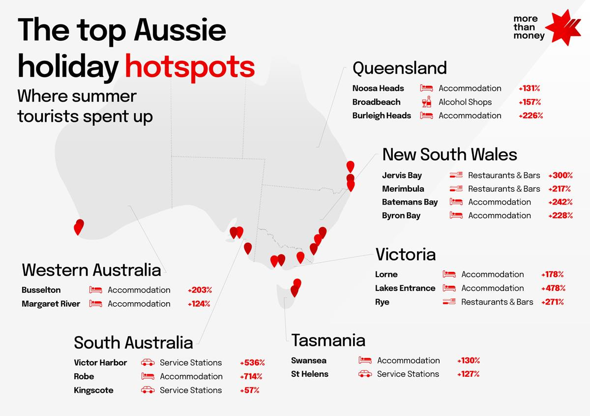 The top Aussie holiday hotspots where summer tourists spent up big