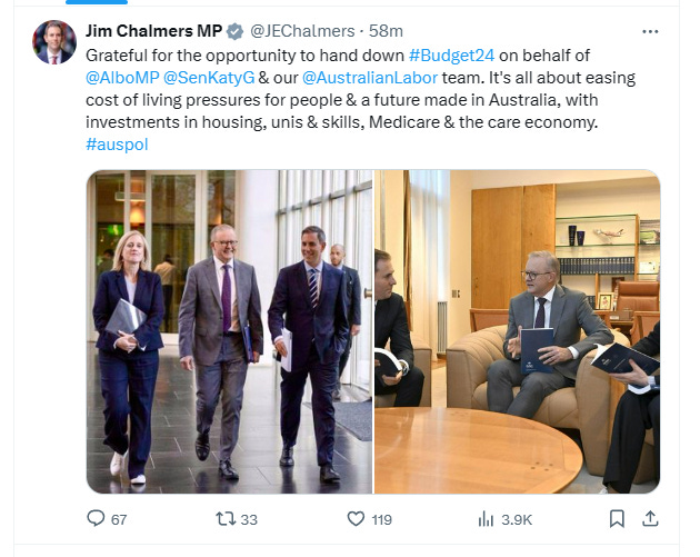He said “The responsible Budget we hand down tomorrow will be all about easing cost of living pressures and investing in the future.”