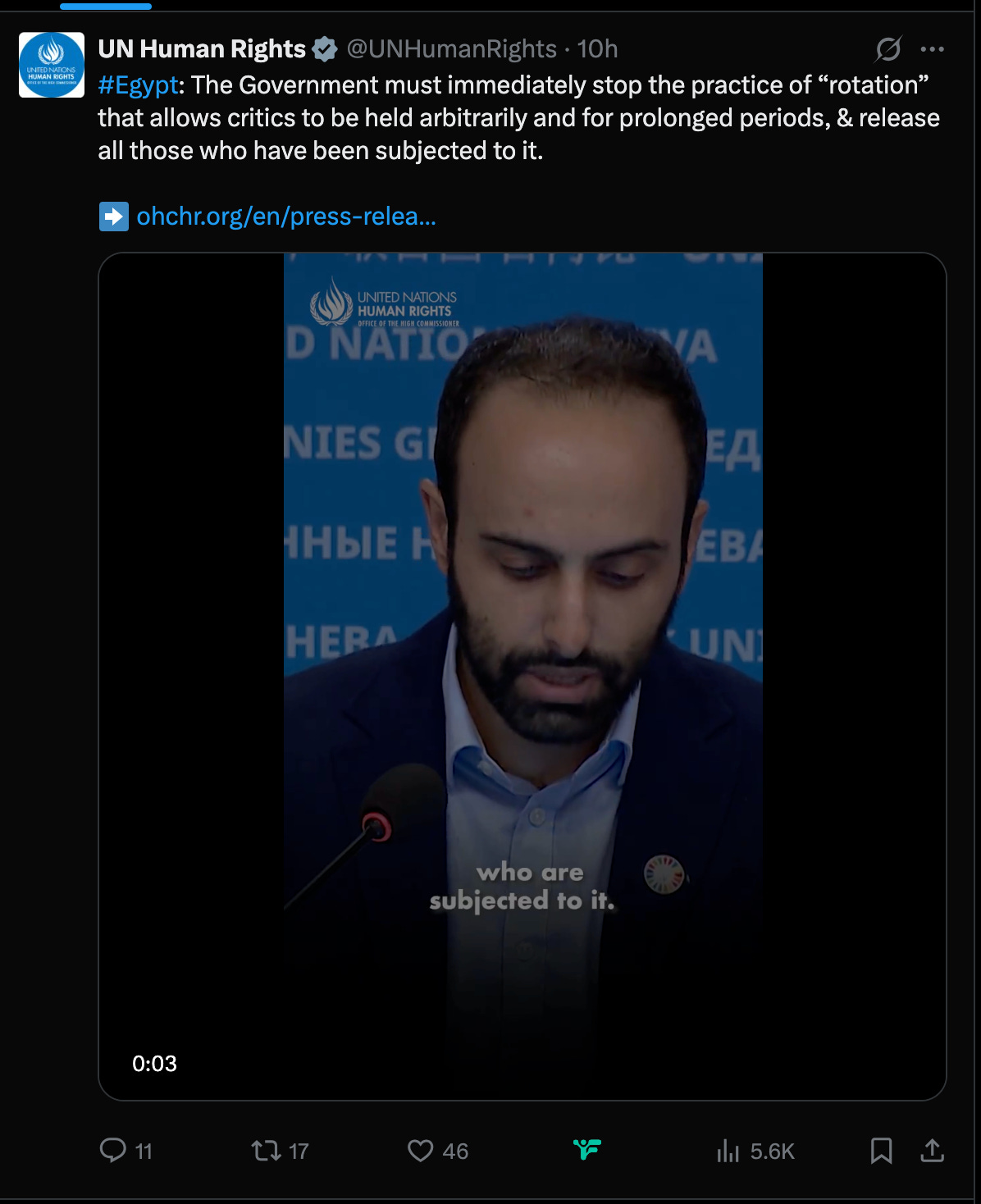 “These journalists are the eyes and ears of the whole world and they must be protected,” OHCHR spokesperson Thameen Al-Kheetan told reporters in Geneva. “All of these incidents must absolutely be investigated and those responsible must be held accountable.”