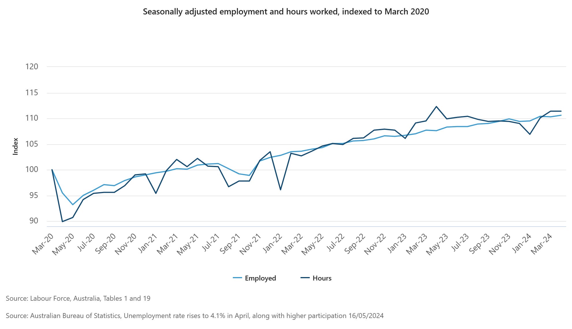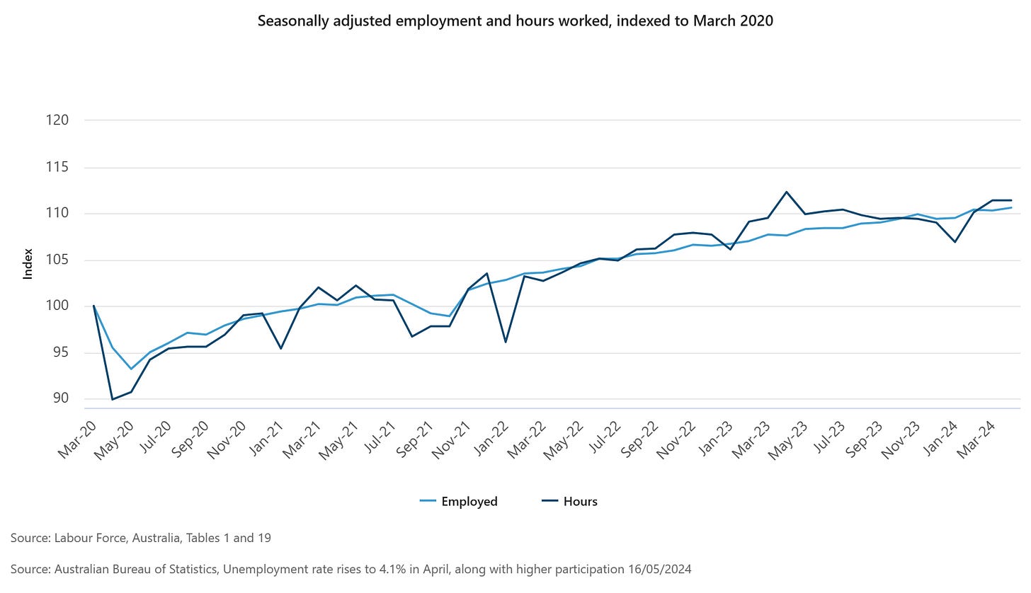 "The increases in both employment and unemployment in April saw the participation rate up by 0.1 percentage point to 66.7 per cent in April. It has been relatively high, above 66.5 per cent, since March 2023.