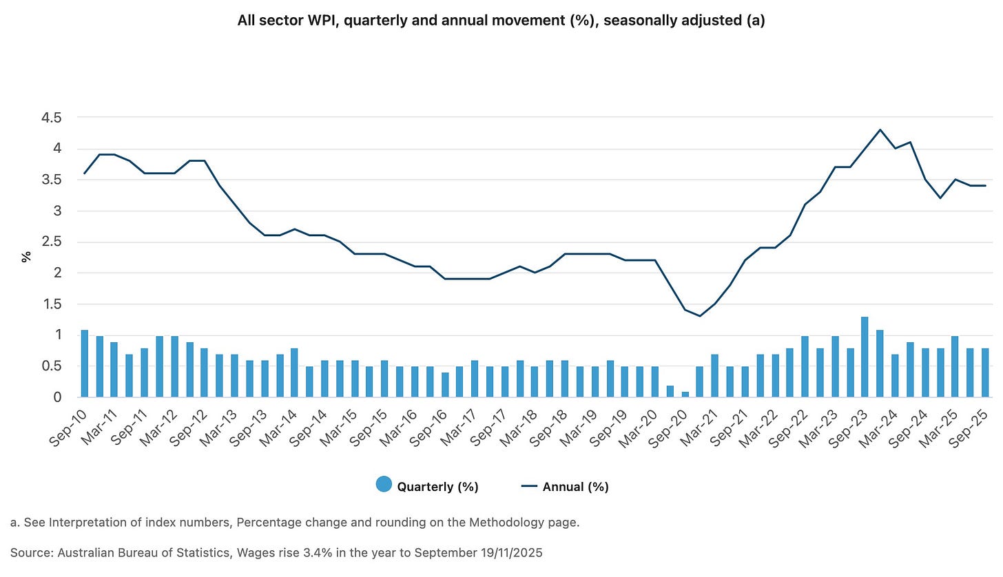 The September quarter wage growth incorporated the Fair Work Commission’s Annual Wage Review decision, which awarded a 3.5% increase effective July 1, 2025.