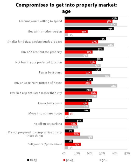 Young Australians between the ages of 18 and 29 who are interested in entering the housing market are willing to make a number of concessions, the most significant of which is the reduction of their price range.